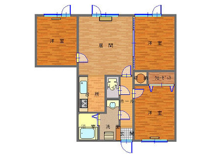 - 3LDK(居間10×洋室5.7×洋室5.6×洋室5.6)